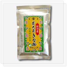 黄大豆きなこ (100g) \216 黄大豆を直火焙煎し特殊加工により微紛化し、くちどけの良い甘みのあるきなこに仕上げました。 原材料:国内産 黄大豆 お好みの量に砂糖(1:1が目安)と食塩をかくし味程度に、ほんの一つまみ(微量)を加えて混ぜ合わせ、餅・おはぎ・ちまき・だんご等にまぶしてお召し上がり下さい。 |