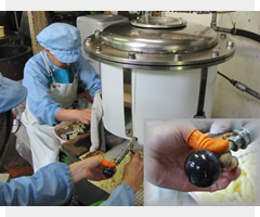 | 異物混入を防ぐため目視、マグネット、金属探知機の 工程を経た後に袋詰めしています。 |